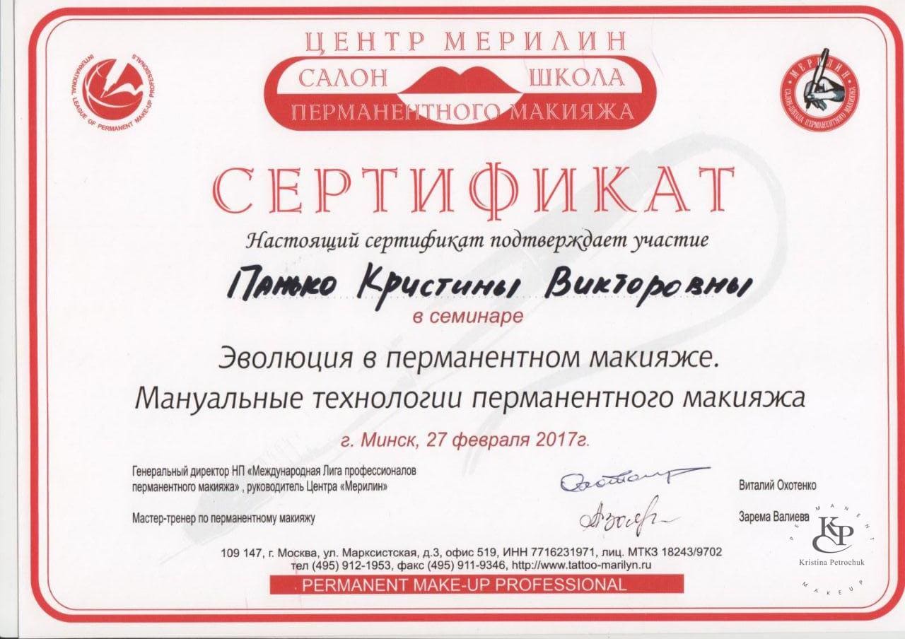Хочу рассказать Вам немного о себе. Искусством перманентного макияжа и татуировки занимаюсь уже более 7 лет. Имею высшее юридическое образование. Слежу за тенденциями и использую только сертифицированные пигменты в своей работе, а также новейшее оборудование и техники. Работаю пигментами класса Премиум - пигменты, имеющие сертификат качества. Являюсь официально квалифицированным (дипломированным) универсальным мастером и преподавателем перманентного макияжа в различных техниках и татуировки в Беларуси. Являюсь дипломированным мастером и преподавателем по высветлению некачественного перманентного макияжа ремуверами, а так же перекрытию старого перманентного макияжа.